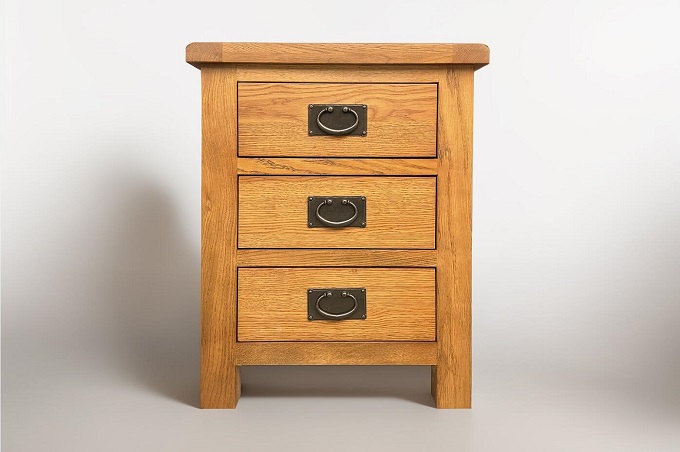 The range features classic dovetail drawer boxes and a warm waxed oak finish. Using Solid American Oak, renowned for its durability alongside high-quality real oak veneers the OAKLAND Oak Furniture Range highlights the beauty of oak wood. The Waxed finish accentuates the warm, natural tones of the oak, creating an inviting ambience in your room with its Rustic Charm. To finalize the aesthetic look of the OAKLAND Rustic Oak Furniture Range brass-effect handles add a touch of sophistication.